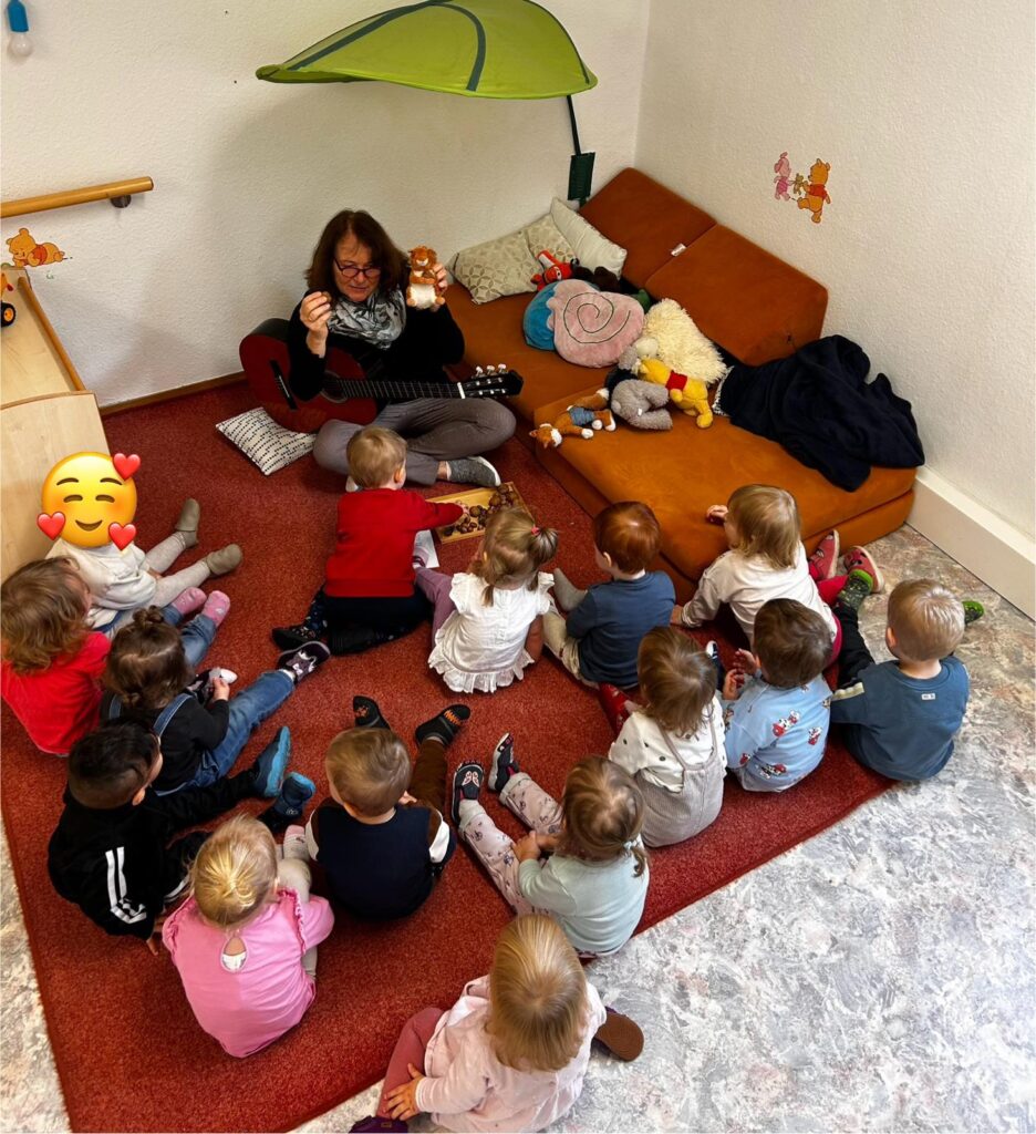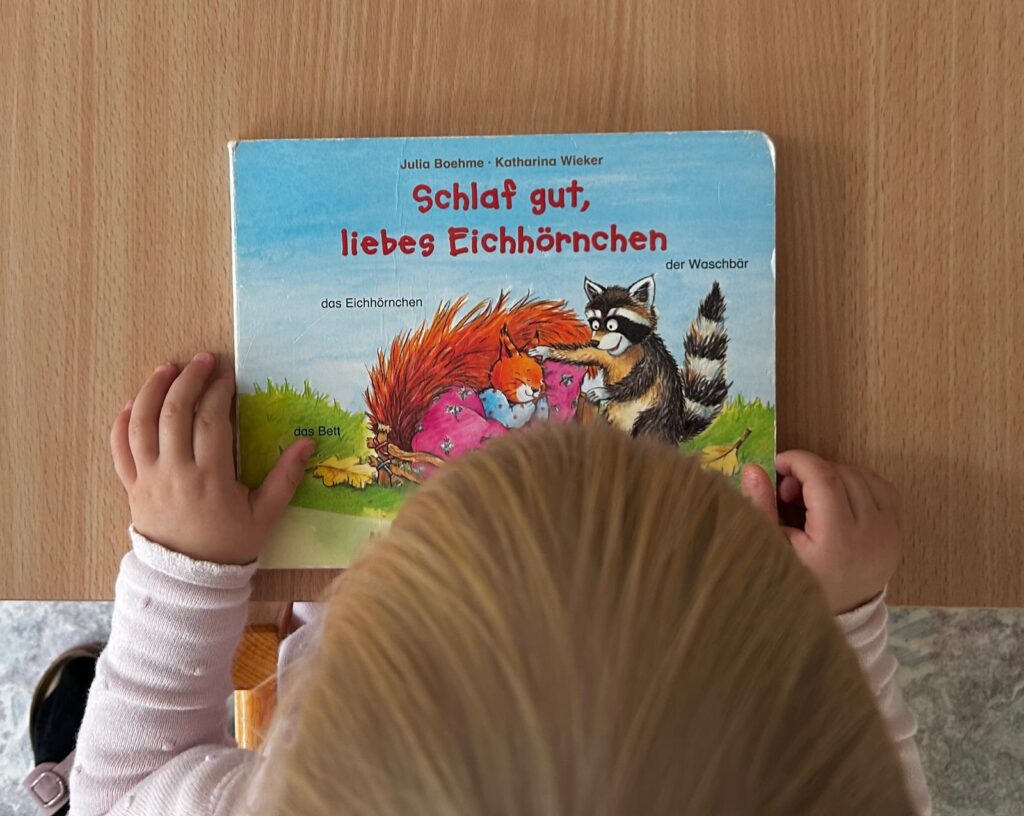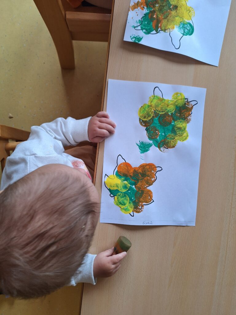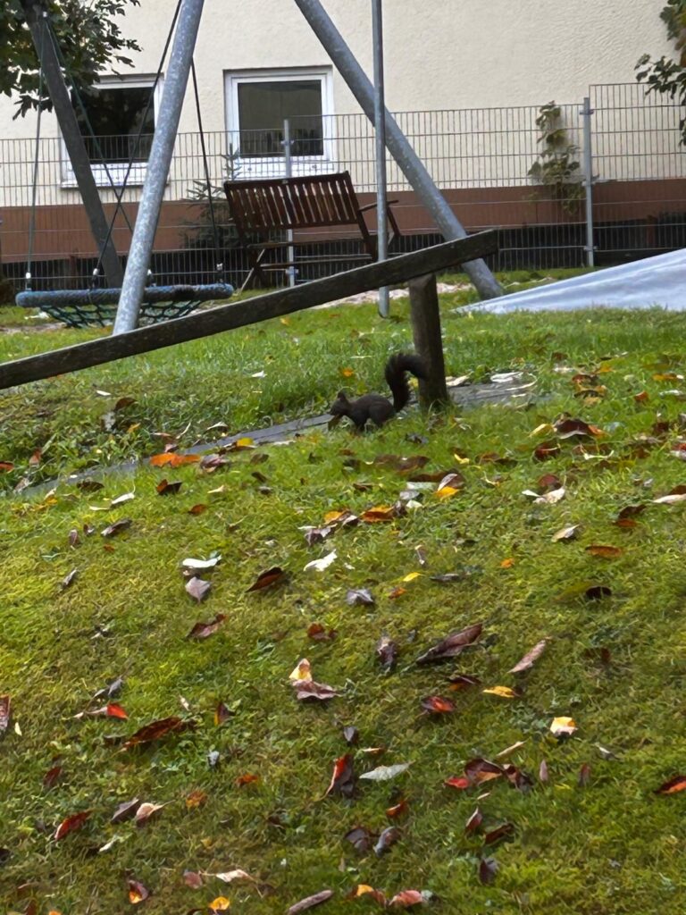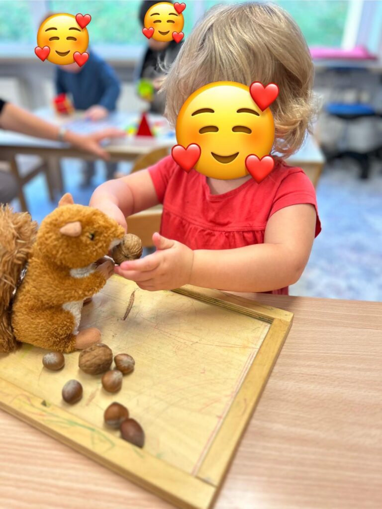 Unsere Kleinsten hatte in den letzten Wochen ebenfalls viel Spaß. Mit Malen, Basteln, Spielen, Singen und Tanzen drehte sich bei ihnen alles um das Thema Eichhörnchen. Jeden Tag aufs Neue freuen sie sich, wenn das echte Eichhörnchen auf dem Außengelände vorbeischaut, um sich eine Nuss zu holen – was für ein Erlebnis! 🥰